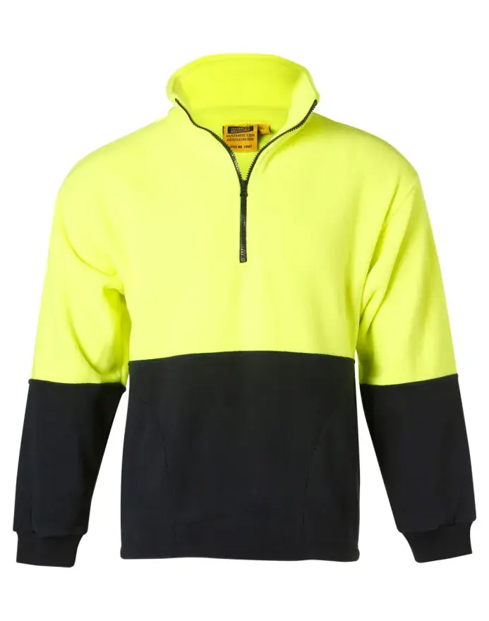 Custom Hi-Vis polar fleece half zip pullover 7XL FluoroYellow/Navy
