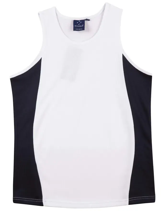 Custom Men's cooldry contrast mesh singlet M White/Navy