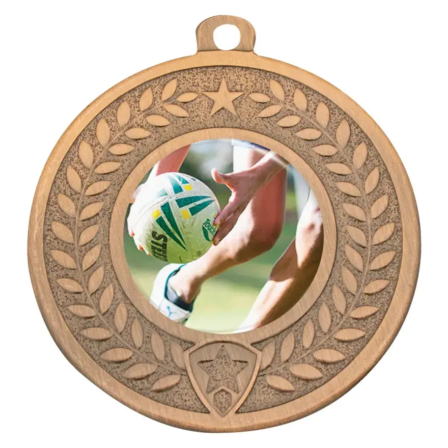 Medal in Gold, Silver and Bronze. Glacier Frosted medal series offers extra weight and shine. Space for 25mm insert. Inserts available in all sports, consider also personalised custom logo centres. All ribbons colours available and medal boxes to suit.