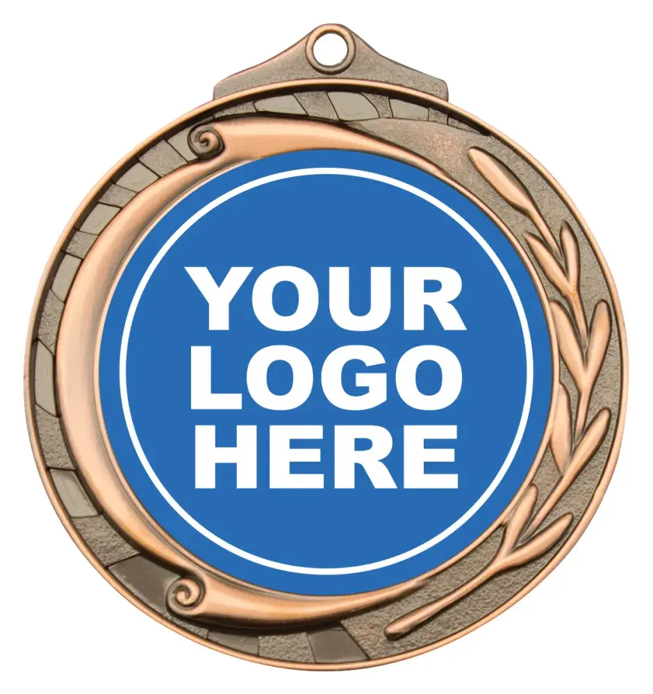 Larger, prestige version of the insert medal in antique gold, silver and bronze. Medals feature an elegant wreath and scroll design that frames the space for your 50mm centre insert. A beautiful medal for all events - use your custom logo or consider range of generic inserts available. Ribbons available in all colours and medal boxes to suit.