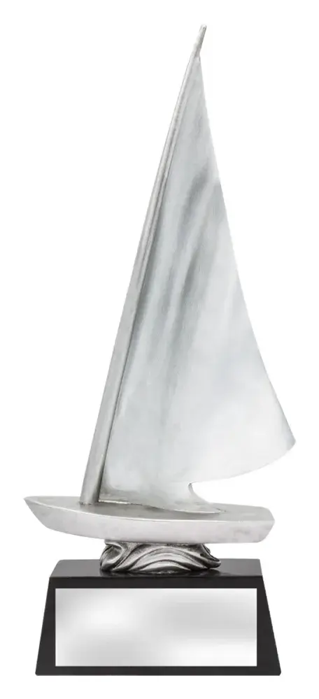 Impressive range of sailing trophies in 3 sizes, the Abstract Dinghy series features a highly stylised design with brilliant silver finish and classic black base.