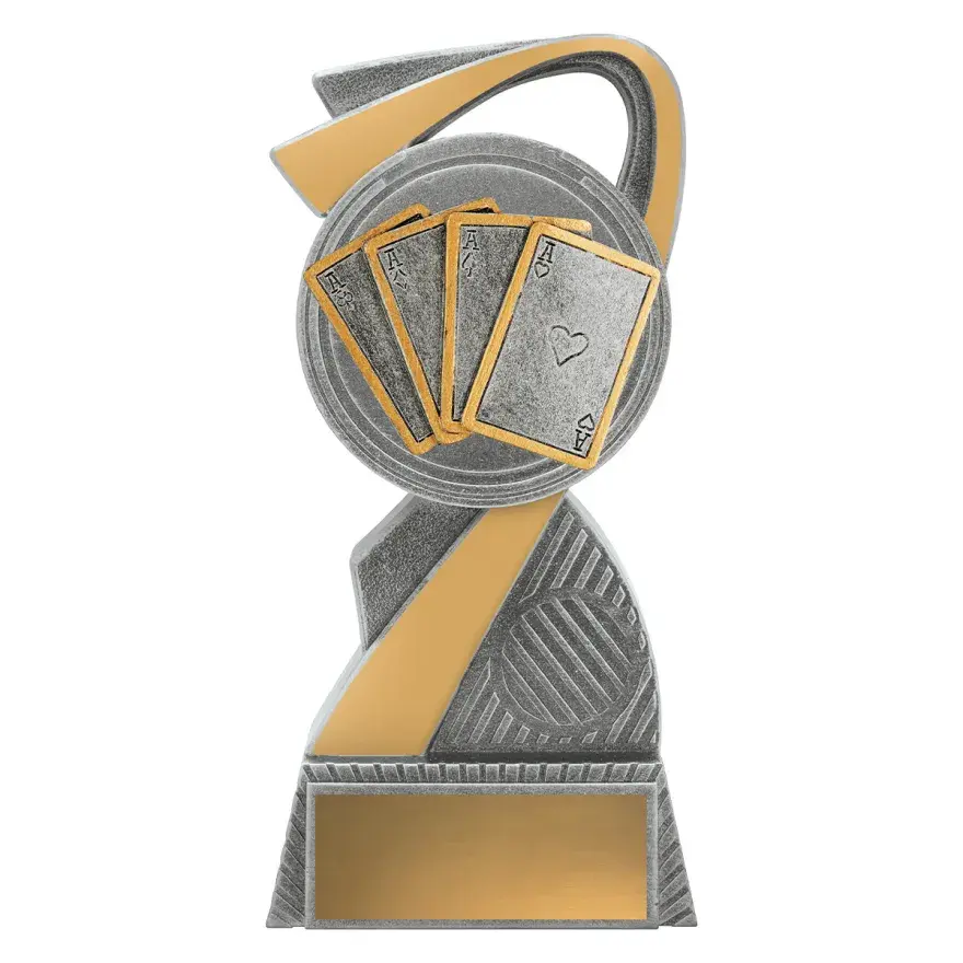 The Valour series of trophies presents a strong design of trophy highlighting the main elements for your award. Finished in antique silver and gold with space for your custom logo.