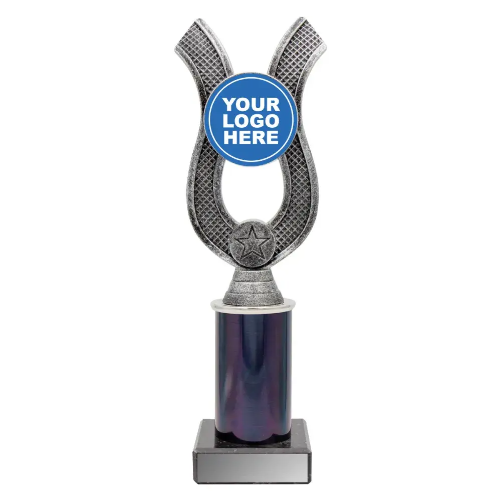 Unique set of antique silver trophies feature the Anchor style holder, black columns and prestige black marble.