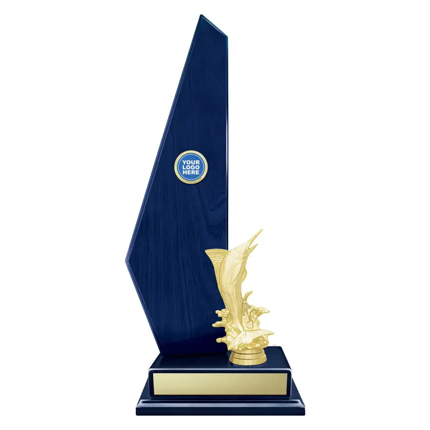 Dynamic design of holder trophies rendered in antique gold colours - Juno showcases your club logo over multiple sizes.