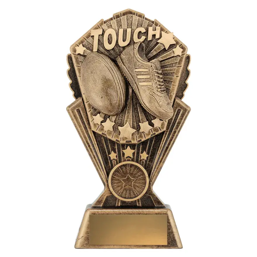 Striking series of timber wing based trophies - multiple sizes and space for your logo insert. Tops for all sports available.