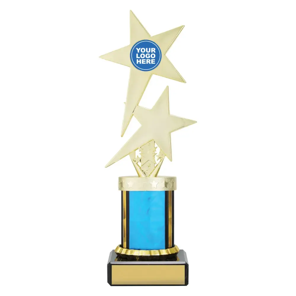 Versatile Twin Star series features dynamic star inspired top on bright Dazzle columns - choose colour to suit your order. Show off your logo or insert in style.