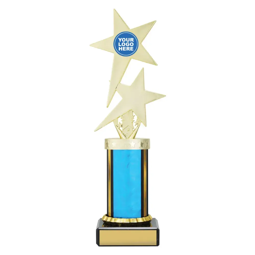 Versatile Twin Star series features dynamic star inspired top on bright Dazzle columns - choose colour to suit your order. Show off your logo or insert in style.