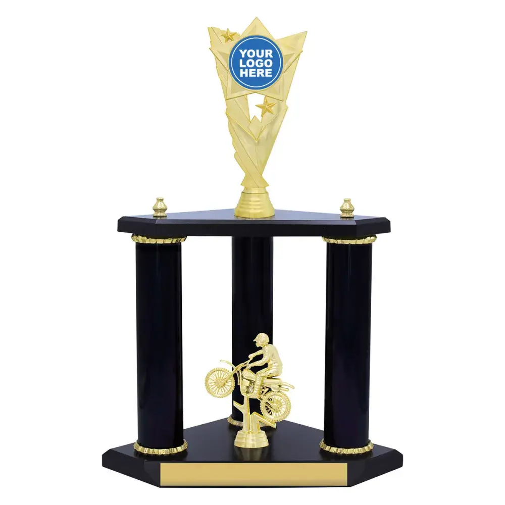 Excellent poster set trophy offers unrivalled value for such an impressive setup. Choose figure or top to represent your activity. Height and colour of columns to be varied.