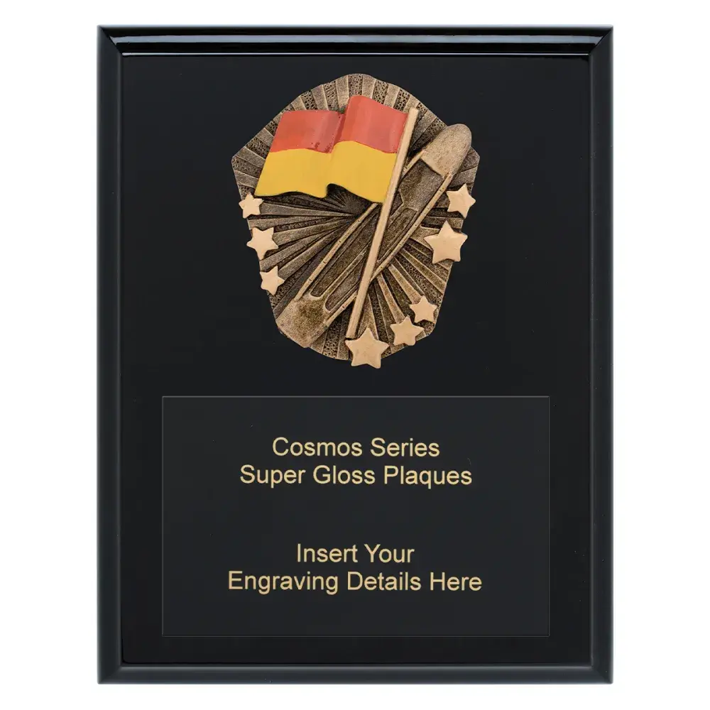Range of super gloss plaques in classic black with brilliant Cosmos fronts and matte black engraving. Choose plaque - available in 3 sizes - to suit your sport or activity.