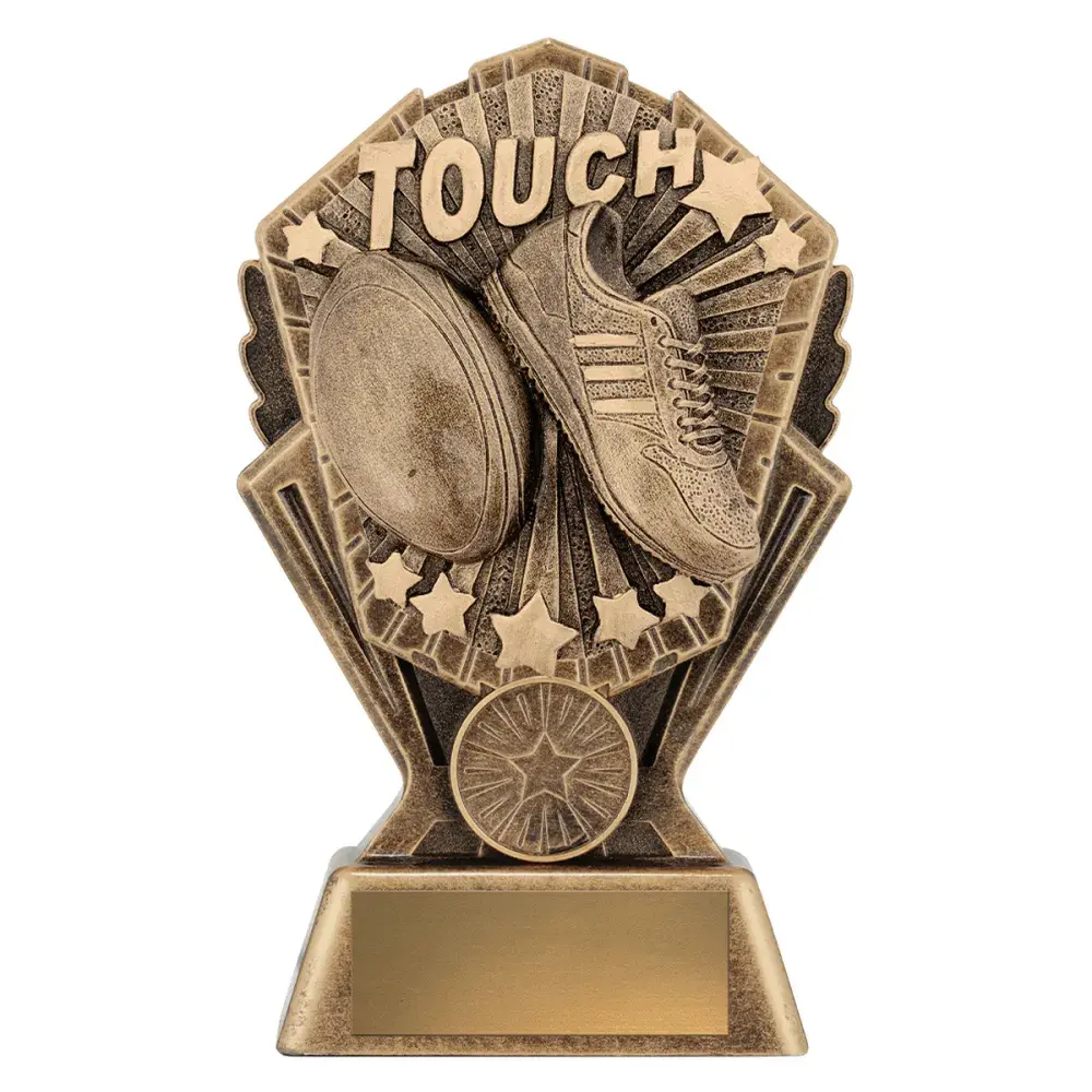 Brilliant series of 'Cosmos' trophies for Touch Football. Trophy series available in many different sports and activities. Available in 3 sizes with space for custom insert if required.