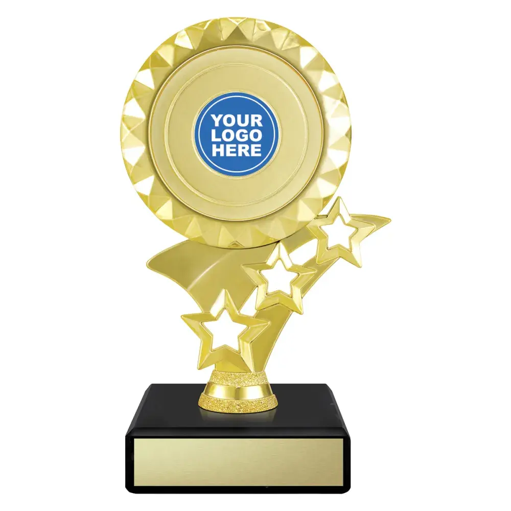 Diamond Star 3D holder available in gold or silver with space for your custom logo over various sizes.