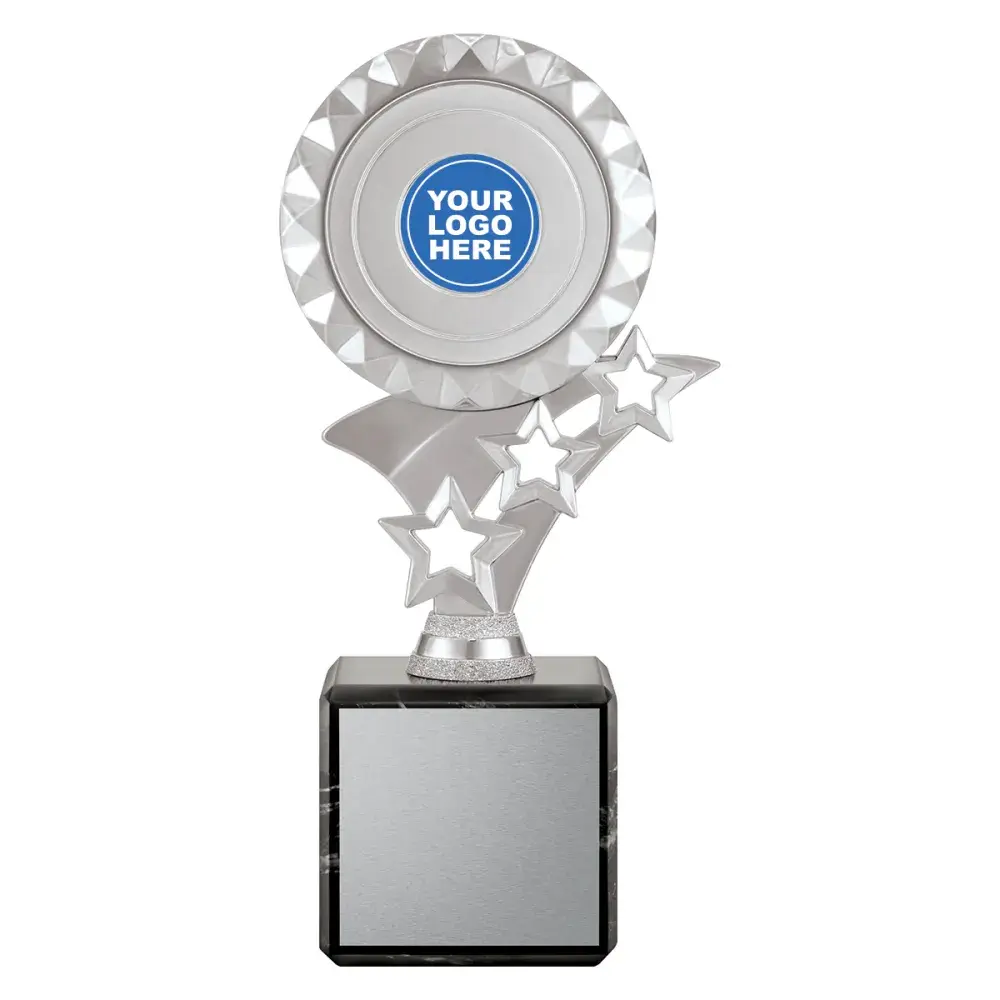 Diamond Star 3D holder available in gold or silver with space for your custom logo over various sizes.