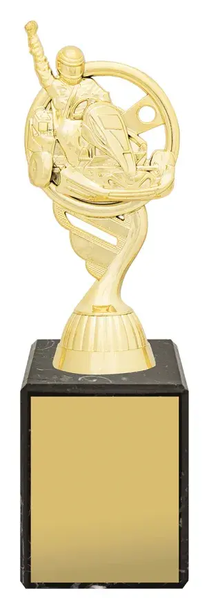 Budget trophy option to recognise the participants in your event or presentation. Traditional bright gold top for your sport or activity paired with black marble base for your engraving.