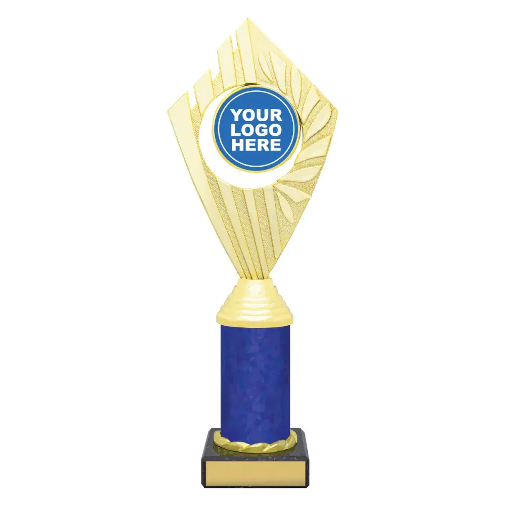 Flyer Series of trophies feature beautifully designed holders on columns of different colours - option to showcase 25 or 50mm logo or insert.