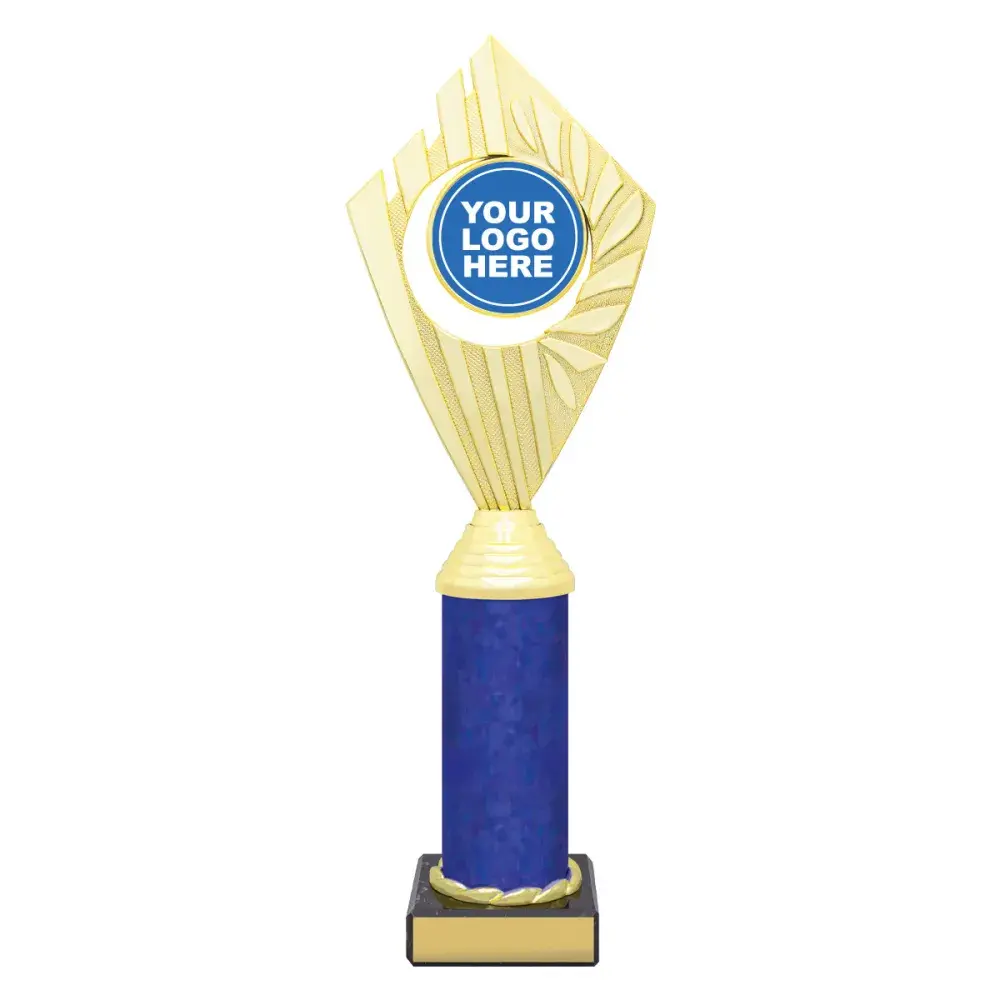 Flyer Series of trophies feature beautifully designed holders on columns of different colours - option to showcase 25 or 50mm logo or insert.