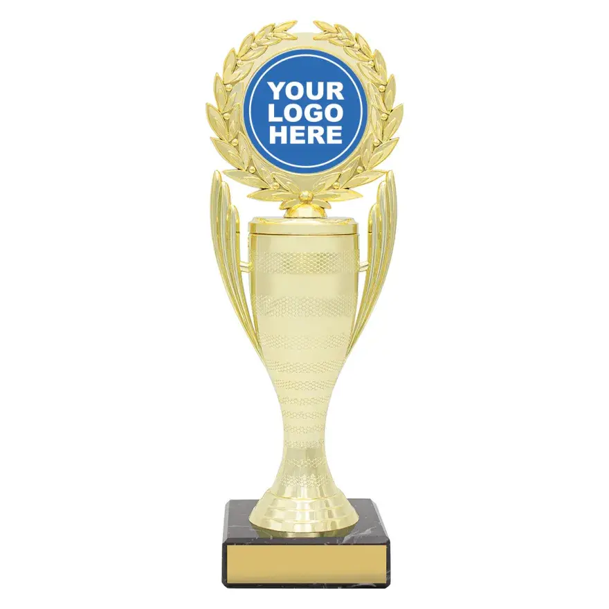 Husky series of trophies on premium black marble allows for different award options for your activity. Appealing antique silver and gold combination over number of sizes.