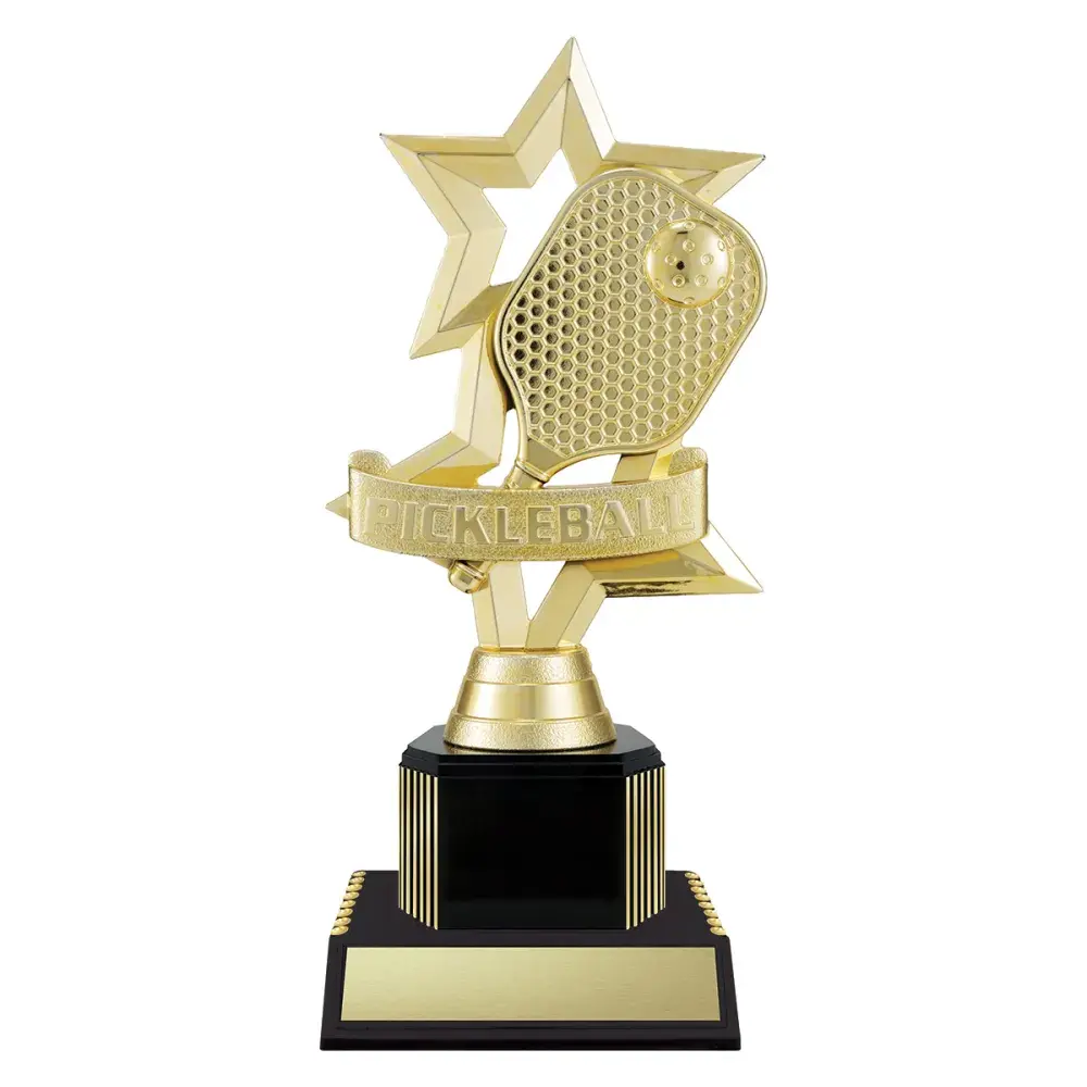 Classic pickleball trophies feature brilliant gold top and column series of design - 2 convenient sizes to choose.