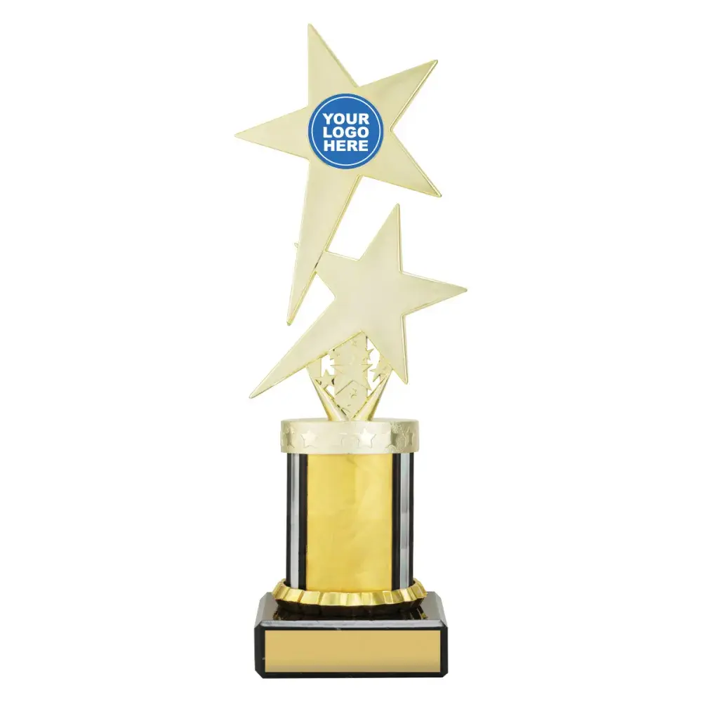 Versatile Twin Star series features dynamic star inspired top on bright Dazzle columns - choose colour to suit your order. Show off your logo or insert in style.