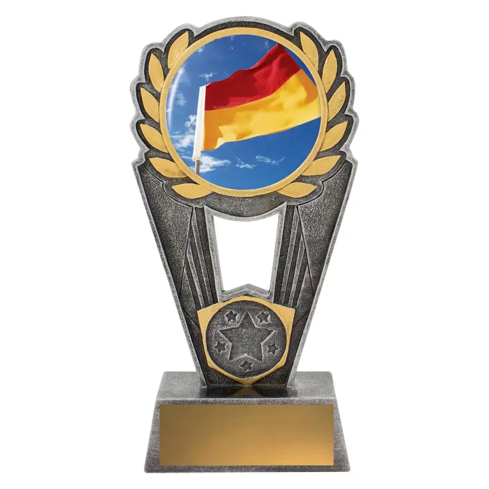 Polaris series offers a striking design of trophy with excellent options for personalisation. Trophies showcase the iconic lifesaving flag over a number of sizes. Space for your 25mm logo if required.