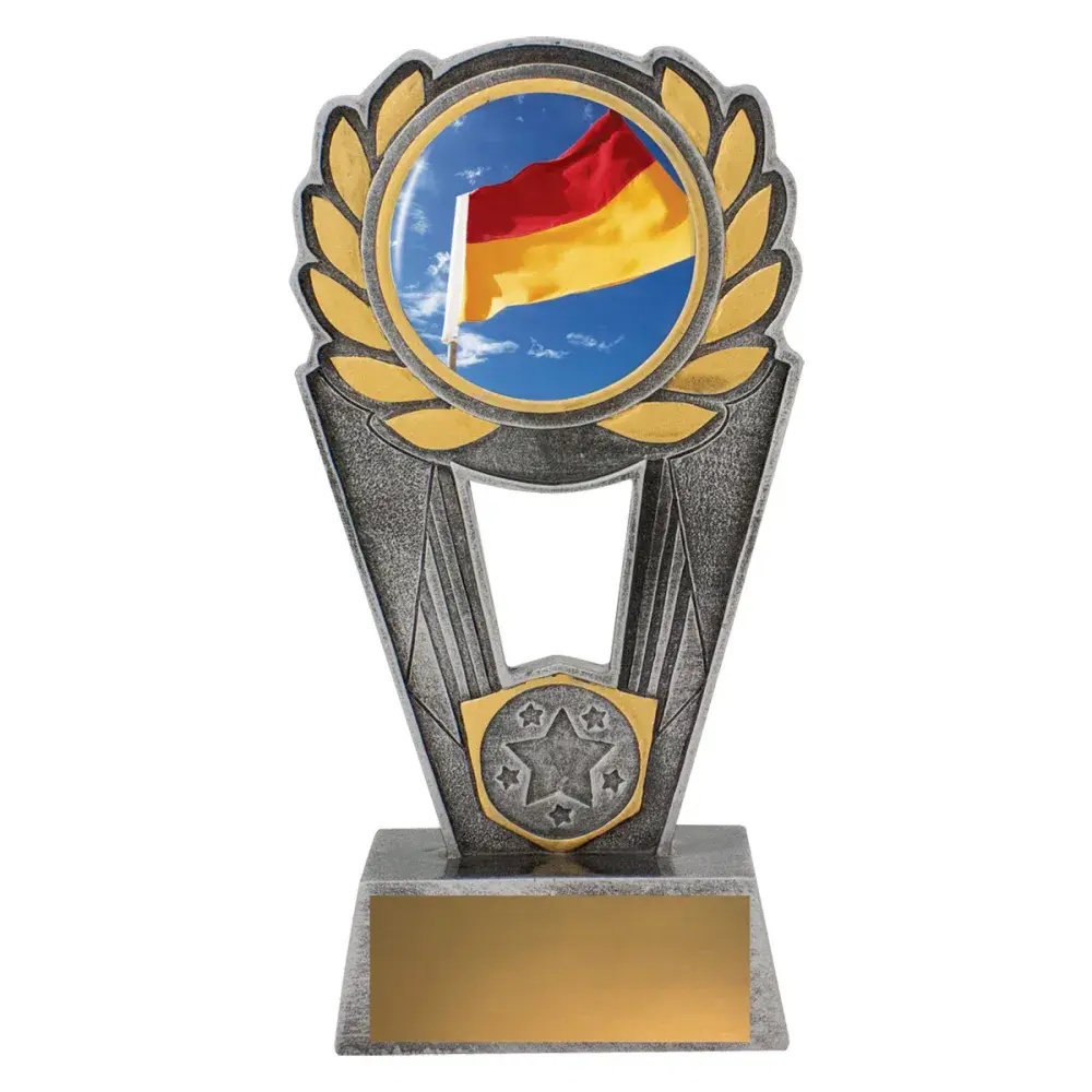 Polaris series offers a striking design of trophy with excellent options for personalisation. Trophies showcase the iconic lifesaving flag over a number of sizes. Space for your 25mm logo if required.