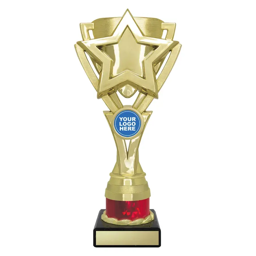 Nova series of trophies present a unique black & gold colour combination with a bold 3D type design to really celebrate the sport or activity of your awards.