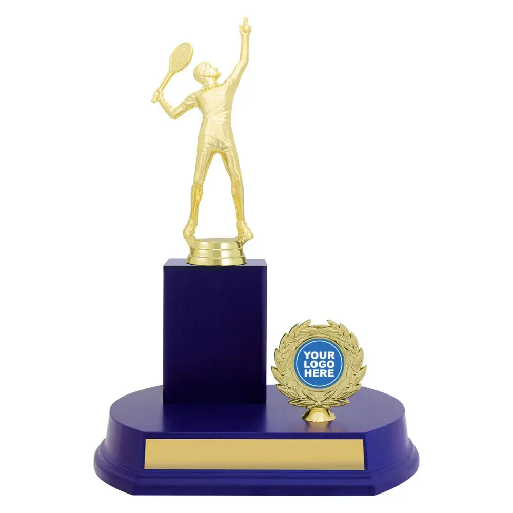Distinctive design of timber trophy highlights the top for your sport and showcases your custom logo. Available in multiple sizes.
