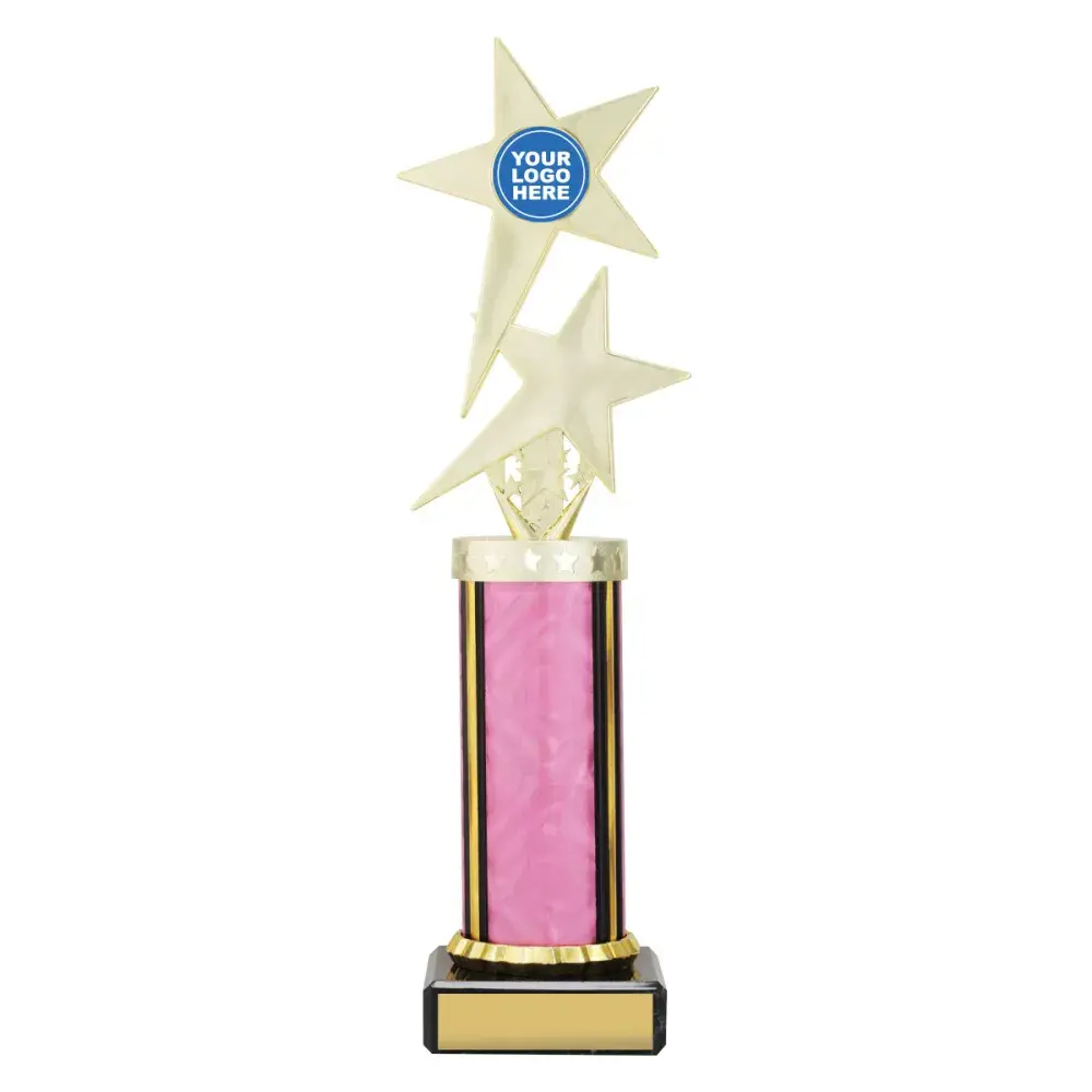 Versatile Twin Star series features dynamic star inspired top on bright Dazzle columns - choose colour to suit your order. Show off your logo or insert in style.