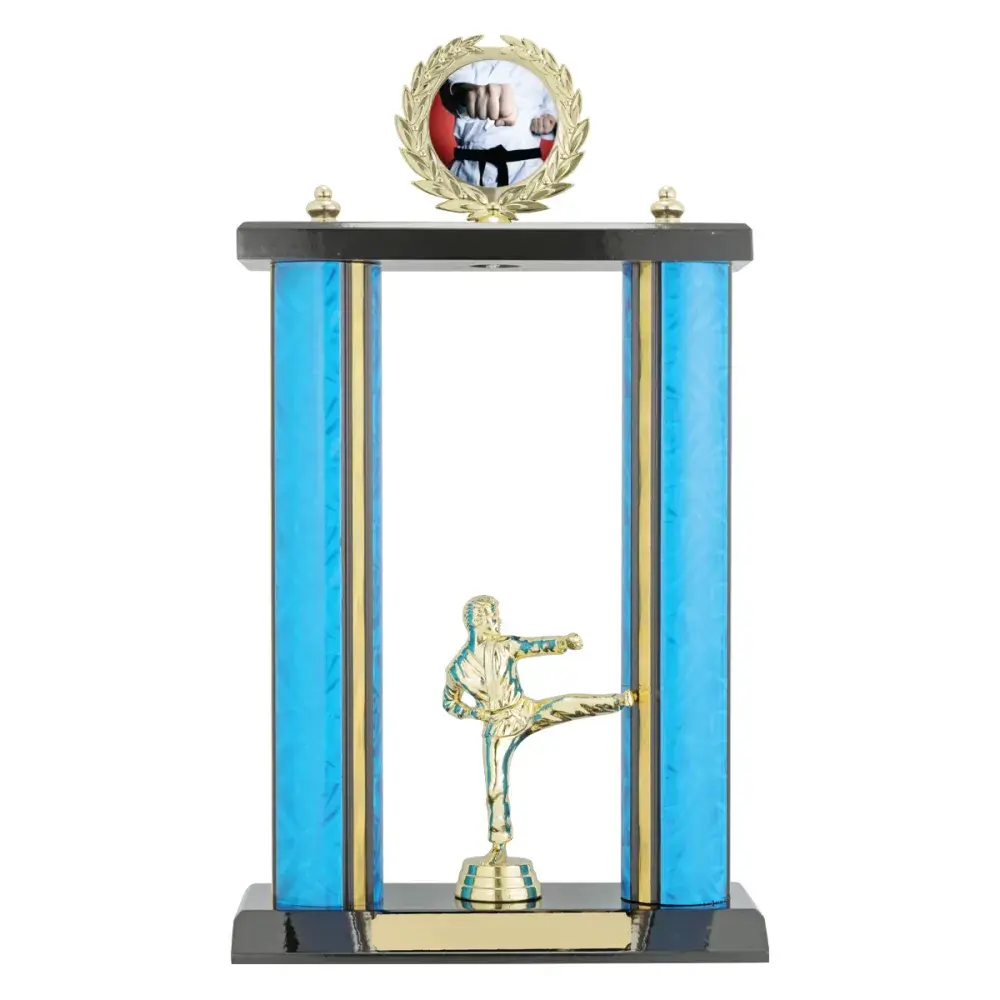 Excellent series of poster set trophies that offer great value for the size and design of award. Choose tops and figures to suit your sport or activity. Length and colour of the columns can be varied for your order to create different sizes.