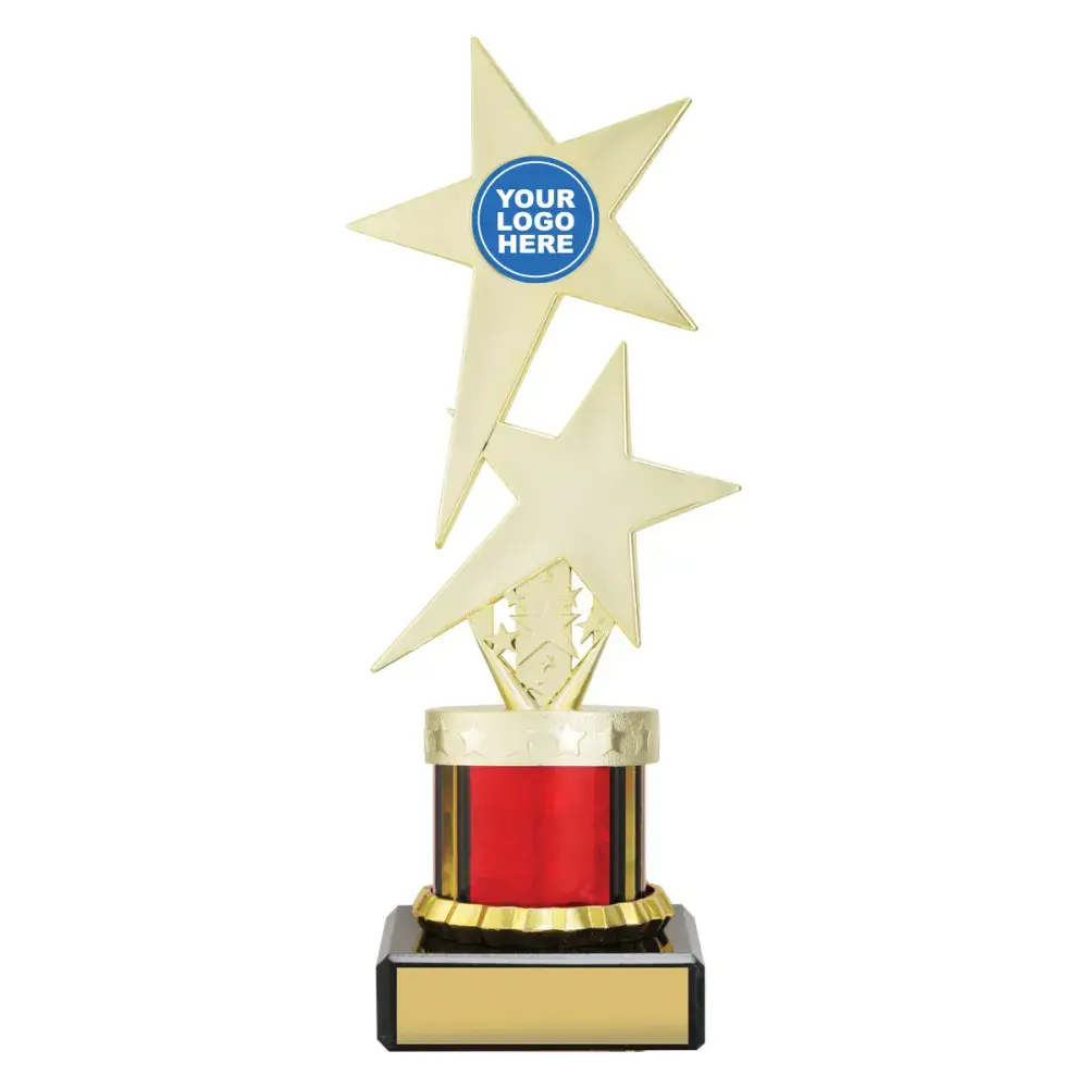 Versatile Twin Star series features dynamic star inspired top on bright Dazzle columns - choose colour to suit your order. Show off your logo or insert in style.