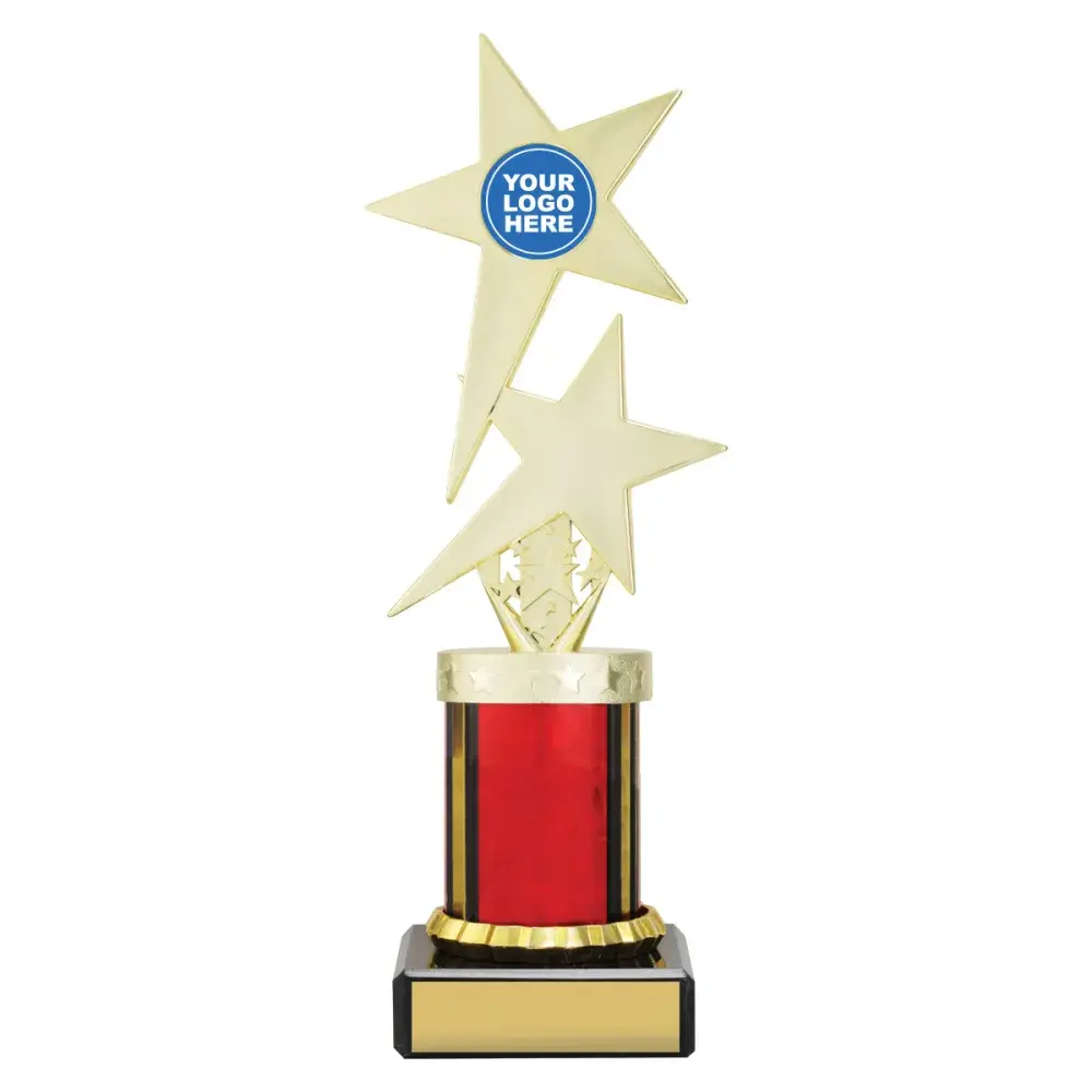Versatile Twin Star series features dynamic star inspired top on bright Dazzle columns - choose colour to suit your order. Show off your logo or insert in style.