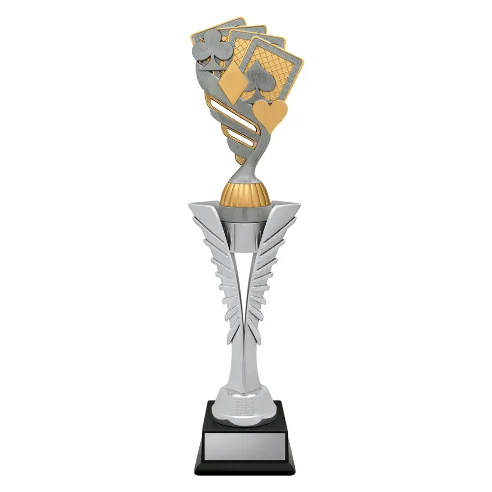 Silver Spear trophies showcase a brilliant top on a distinctive "spear" riser - the top finished in antique silver. Available in 3 sizes.