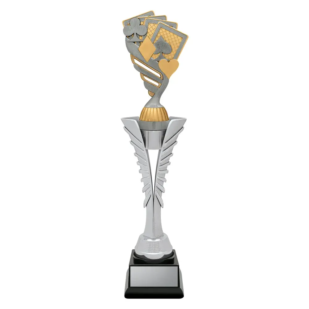 Silver Spear trophies showcase a brilliant top on a distinctive "spear" riser - the top finished in antique silver. Available in 3 sizes.