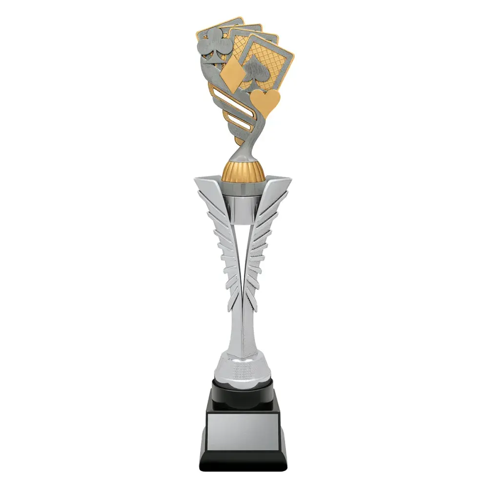 Silver Spear trophies showcase a brilliant top on a distinctive "spear" riser - the top finished in antique silver. Available in 3 sizes.