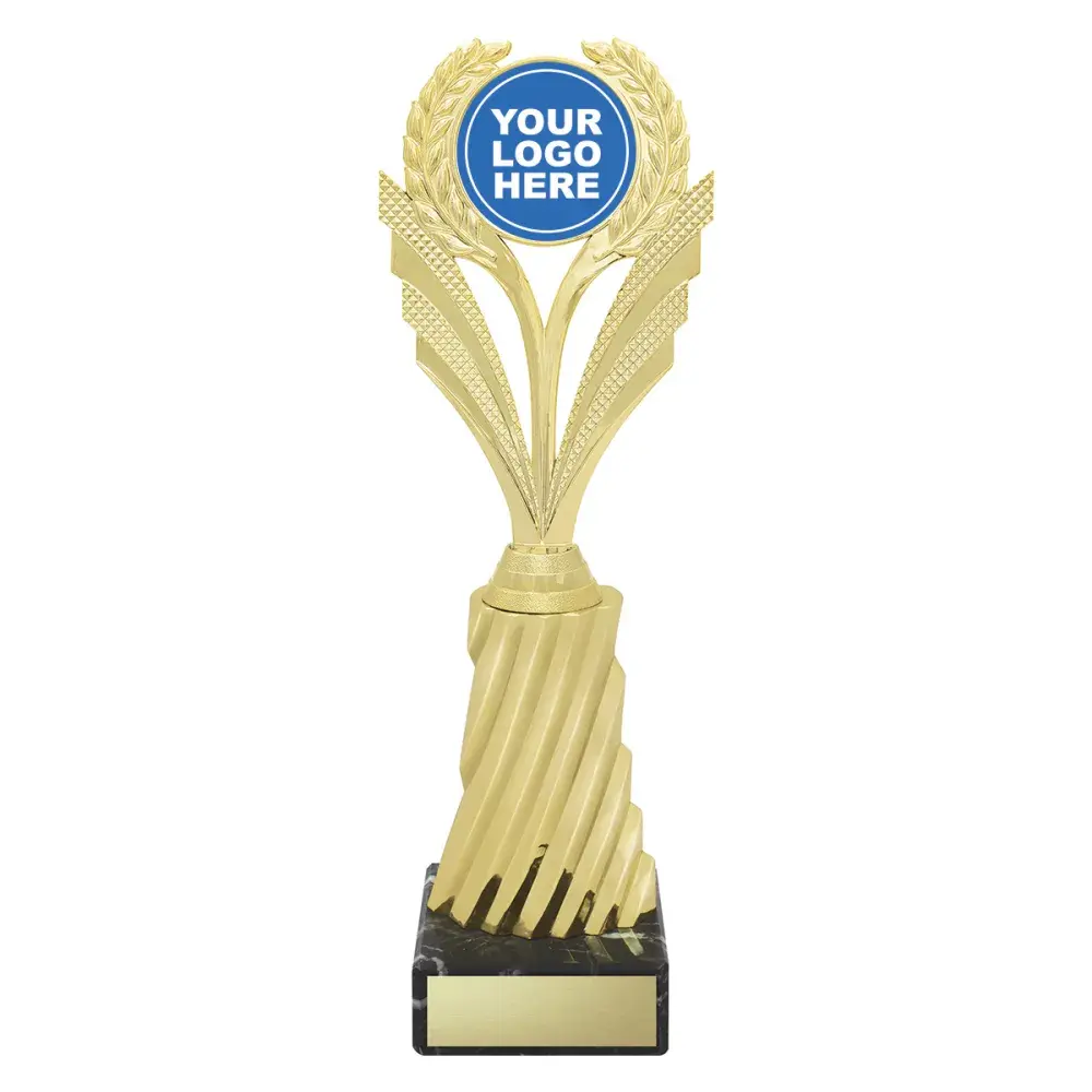 Simple yet effective trophy to showcase your custom logo. The target holder sits atop an attractive spiral riser which is finished in classic trophy gold.