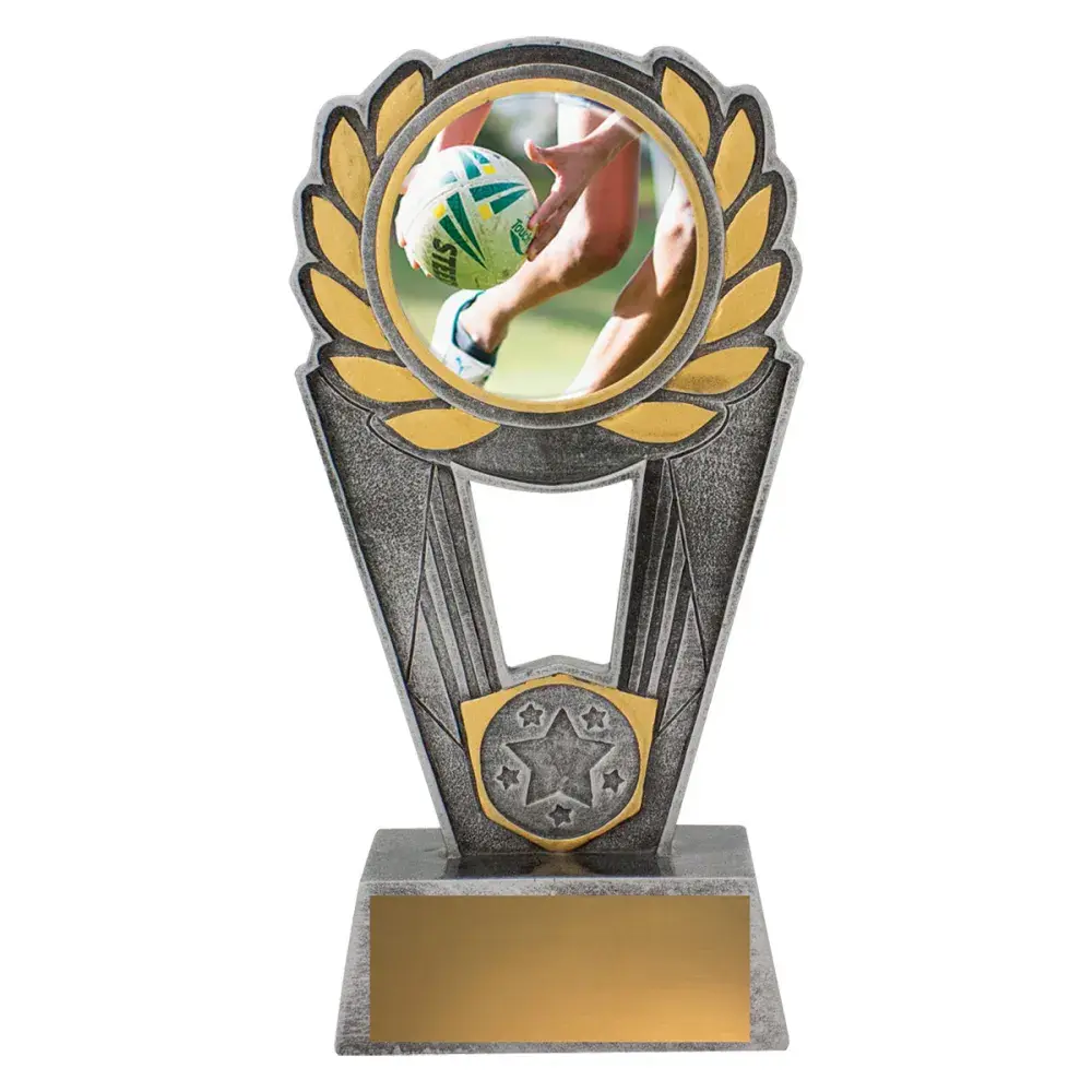 Polaris series offers a striking design of trophy with excellent options for personalisation. Trophies showcase a touch football scene in action over a number of sizes. Space for your 25mm logo if required.
