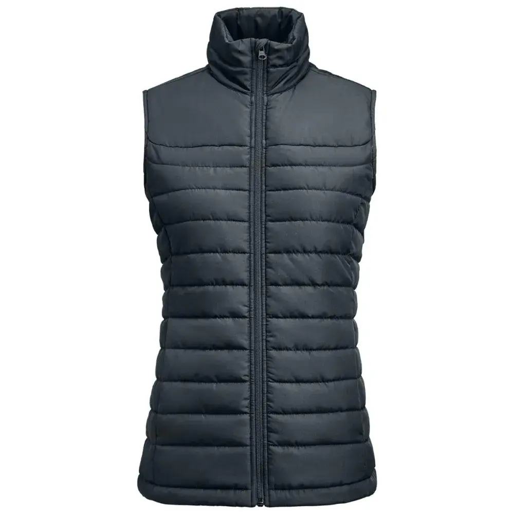 The Arches Women's padded vest is made from recycled polyester, a PFAS-free water-repellent finish and is designed to offer unparalleled comfort, functionality, and retain warmth. It features seam-hidden zipped pockets and an adjustable hem with an elastic drawcord. It also features an inside zipped pocket to secure essentials and a chin protector for enhanced comfort.