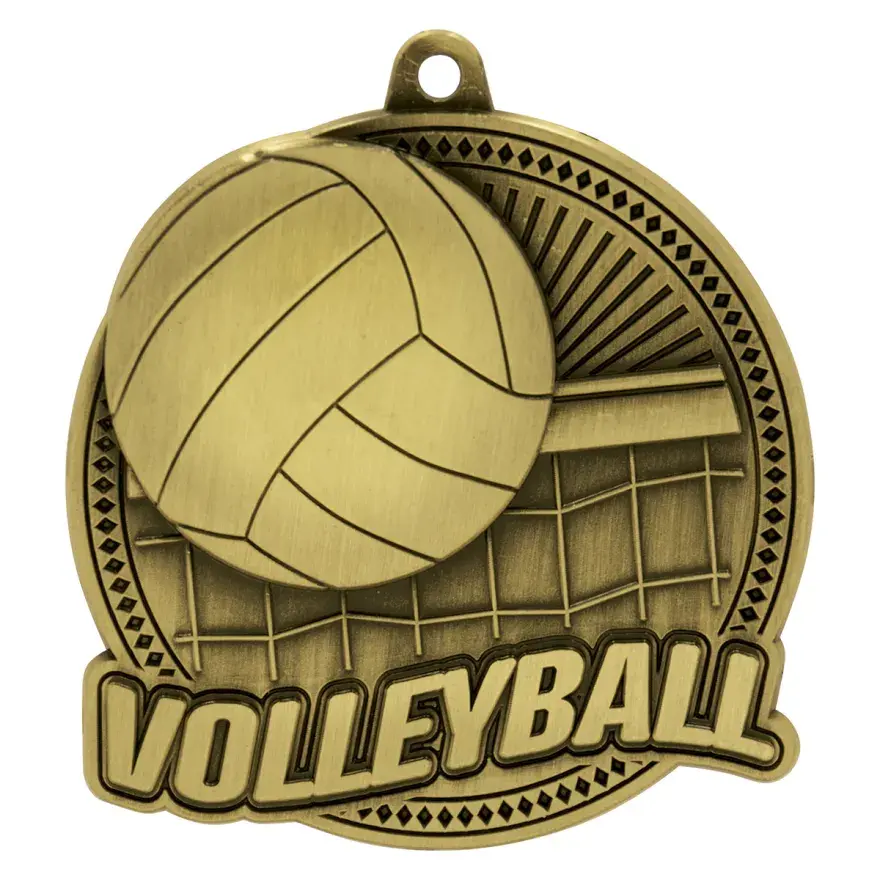 Bright gold, silver and bronze medals for Volleyball. A popular medal series, the Star Series features a unique hollow multi-star design and extra thick edge. There is a rectangle panel on the back of each medal for your engraving. Ribbons available in all colours and plenty of medal boxes to suit.