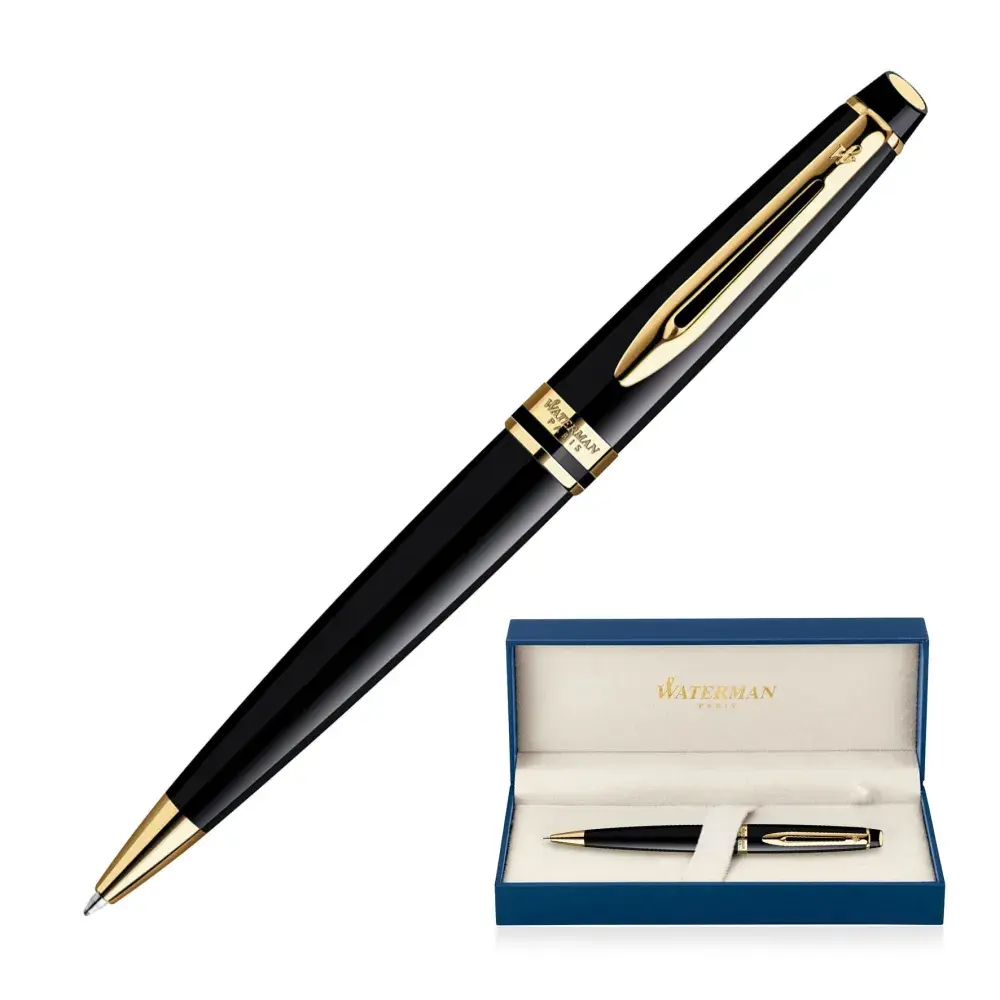 Custom Metal Pen Ballpoint Waterman Expert - Lacquer Black 23K Gold Plated Trim