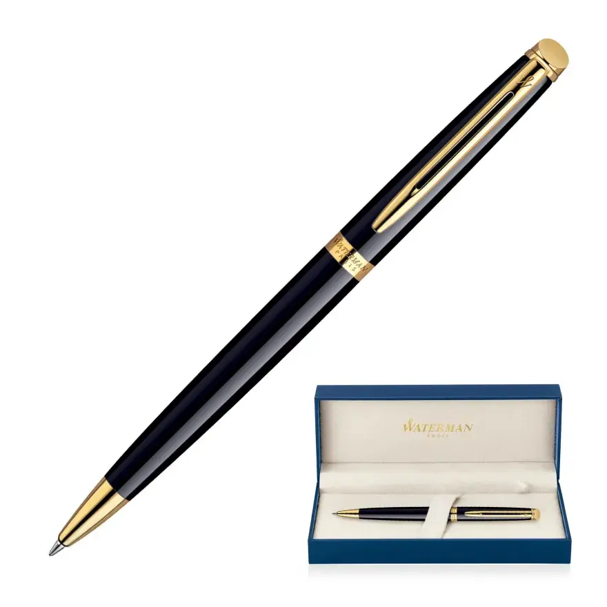 Eye-fill View product Custom Metal Pen Ballpoint Waterman Hemisphere - Lacquer Black 23K Gold Plated Trim $113.09
