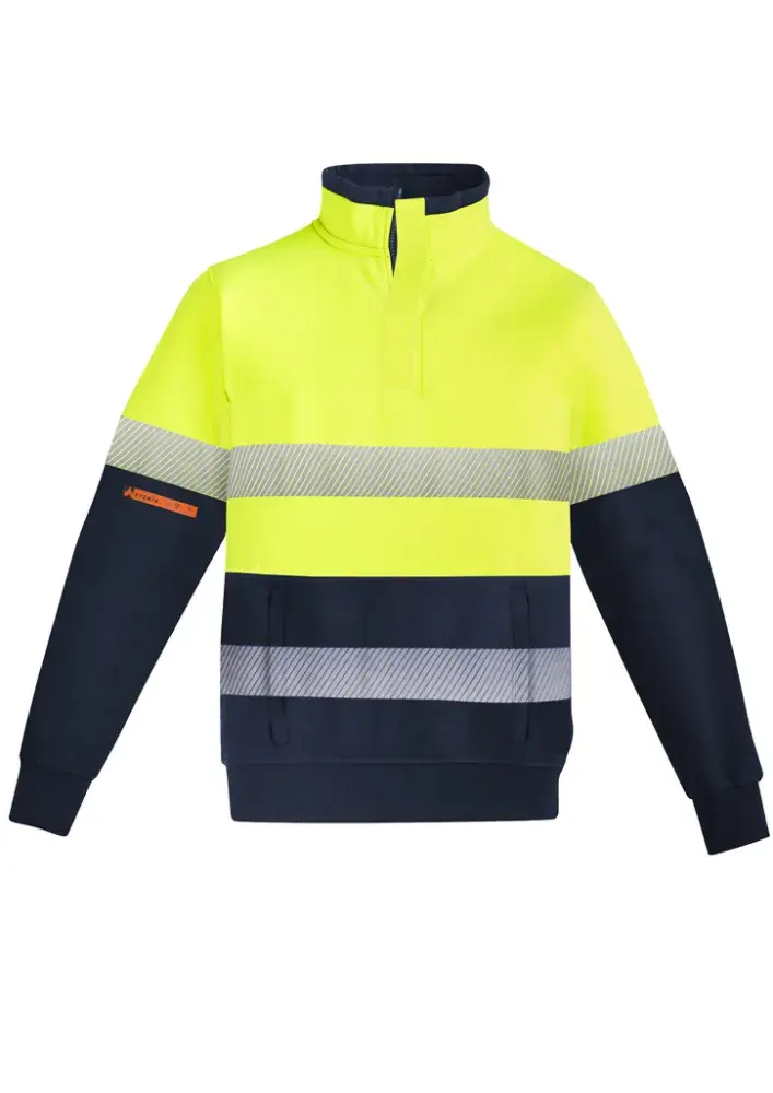 Custom Mens Orange Flame Hi Vis 1/4 Zip Pullover - Hoop Taped