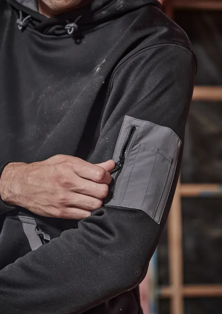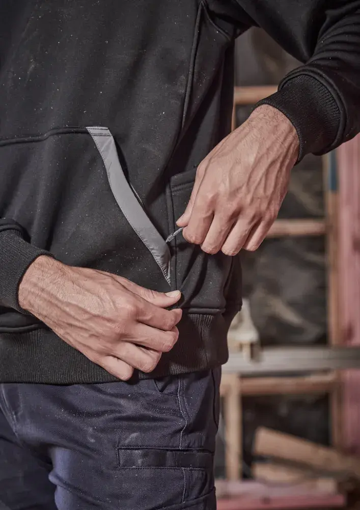Kangaroo pockets with zip closures to safely store all your items.
