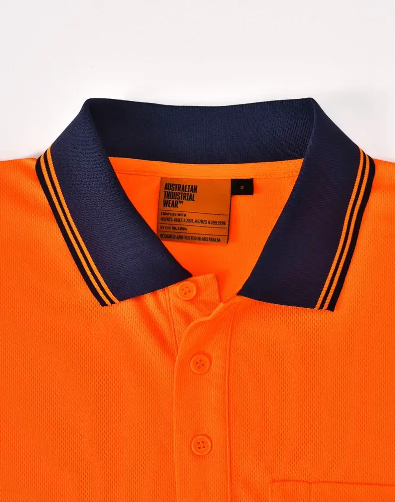 Custom Unisex Cooldry Segmented Safety S/S Polo 3XL Orange/Navy