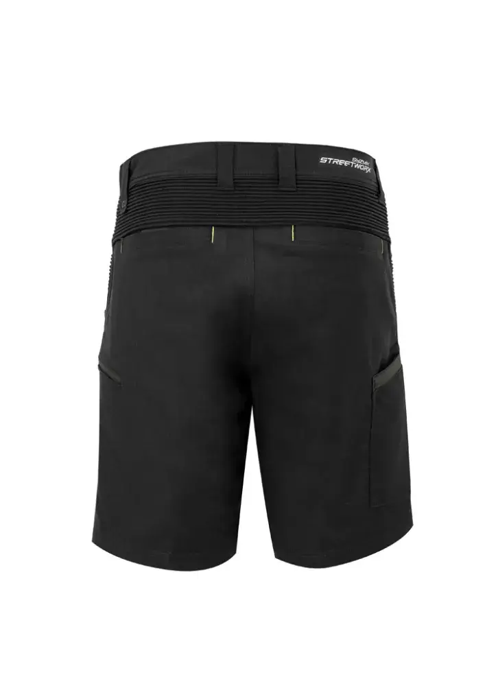 Unique stretch pleating across the back hem and front pockets for added stretch