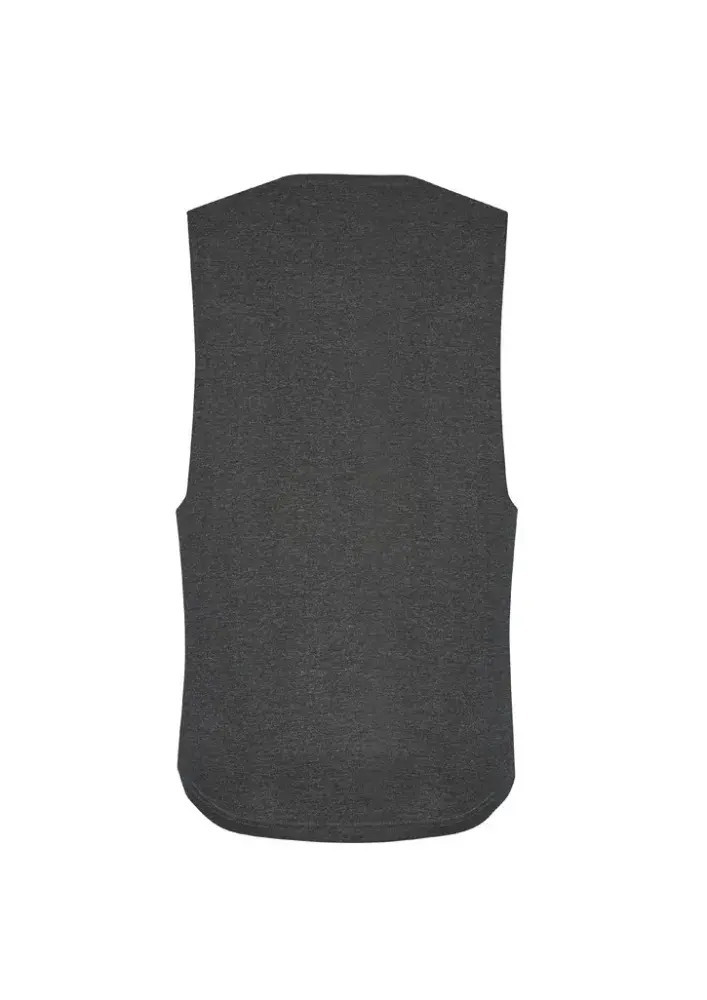 Mens Sleevless style features drop armhole with raw edge finish